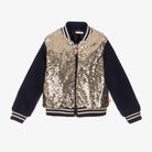 The set includes a navy and gold bomber style zip up jacket with reversible sequins.