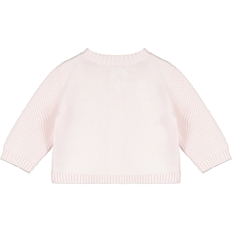 Beautiful pink fine knit cardigan with two different types of stitching by Emile et Rose, perfect for your little new-born.
