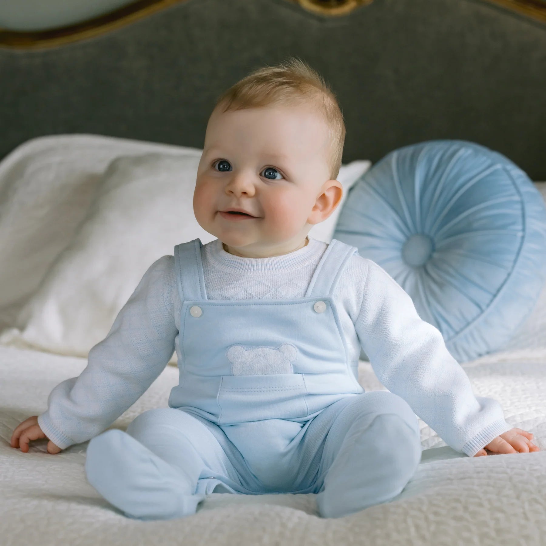 Emile et Rose Kit Baby Boys Blue Teddy Dungaree Style Babygrow