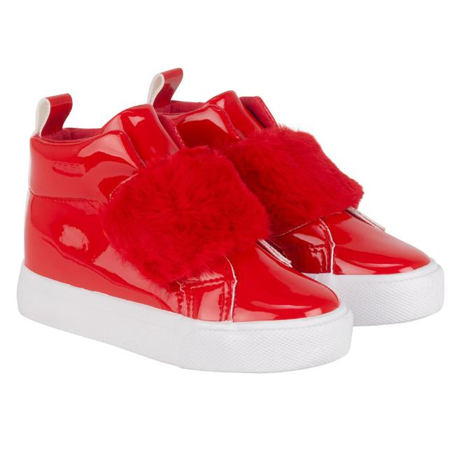 Little A by A Dee Girls Red Faux Fur Strap High Top Trainers